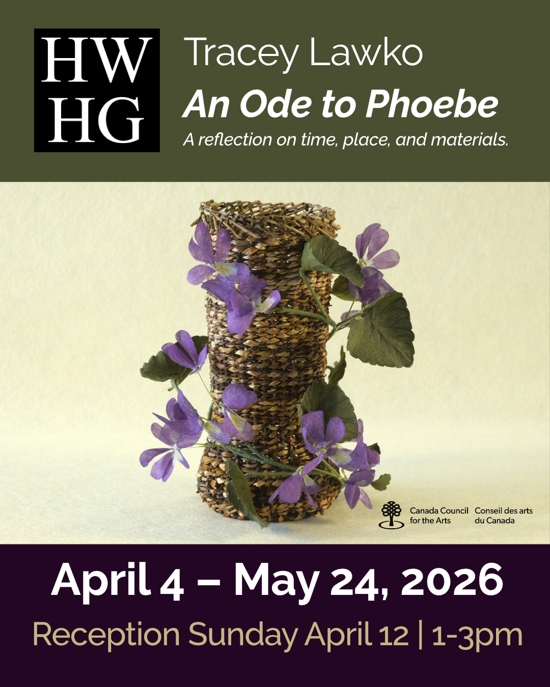 With An Ode to Phoebe, I bring my contemporary textile work into conversation with the hand-painted china of Phoebe Watson created more than one hundred years ago. In setting my wall-mounted textiles and freestanding sculptural forms alongside Phoebe’s historic painted ceramics, I reflect on the importance of plants and pollinators in southern Ontario over time and on the ecosystems of the Grand River Valley and the Niagara Escarpment—places shaped by time, human activity, and seasonal cycles.