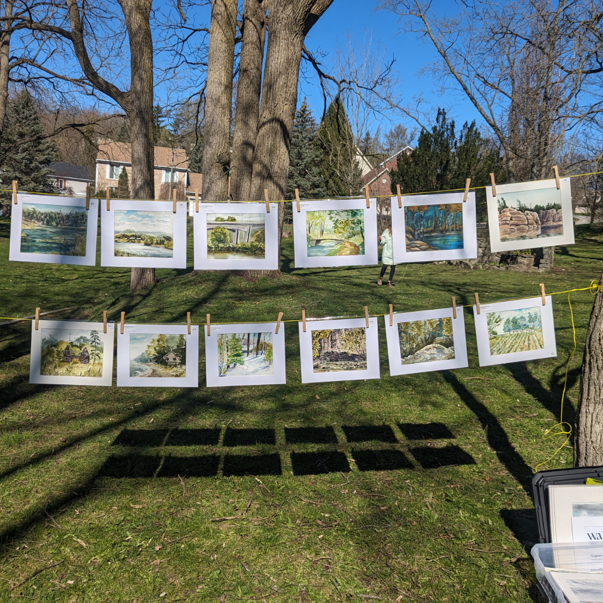 Unframed works will be displayed on clotheslines through the trees and along the edge of the park.